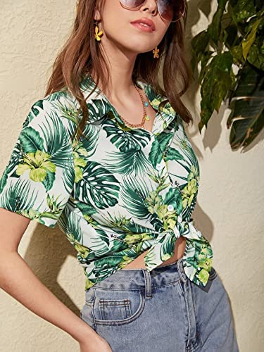 Feature: Tropical, Lapel Collar, Single Breasted, Figure All Over Print, Short Sleeve, Boho Blouse Shirt