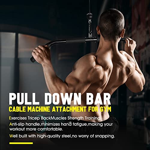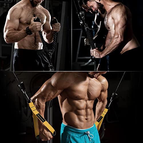 💪【Professional Design, Various Exercise Modes】After a lot of market research and communication with fitness consultants. We designed a complete tricep pulley system, with 2 pulley, 3 cables, lat pull down bar and other weights pulley system gym attachments. So we upgraded the original kits, allowing you to flexible DIY the workout pulley system and choose your own way to do various exercises, such as Cable Corssover, Biceps Curl, Triceps Pull Down, Lat and Lift, Row, Fly and etc
