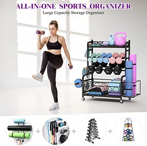Weight Rack for Dumbbells, Dumbbell Rack Weight Stand, VOPEAK Home Gym Storage Rack for Yoga Mat Kettlebells and Strength Training Equipment, Weight Storage Holder Rack for Dumbbells with Wheels