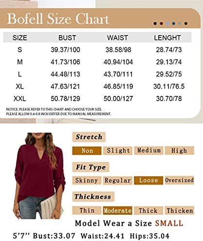 【Features for Sleeve】This business casual tops for women with 3/4 cuffed sleeve give us a cool and fresh style, which is easy to roll up or pull it down as a long sleeve blouse.
