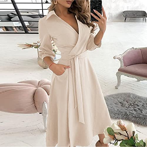 Women’s Casual Dresses Seven-Part Sleeve Long Dresses Fashionista Casual Lapels Quartered Maxi Dress Dresses