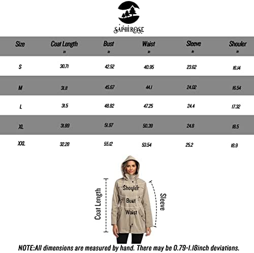[Size]: The rain coat is casual fit and big enough, runs big for petite women, and pick one size down if you are slim. The MODEL in the picture is 5’9″ (174cm) and 114.64 lbs (52kg). Her perfect size is small.