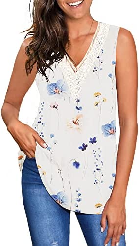 Womens Summer Tops V Neck Tank Tops Floral Sleeveless T Shirts Blouse