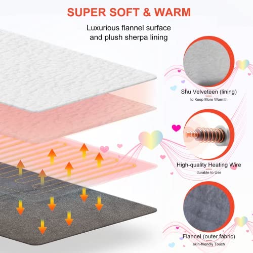 Material: both sides are constructed from ultra plush flannel that is exceptionally durable and warm.Only the bottom with heating wires ( for safety concern ) but the soft and thick flannel cover will keep heat inside the pad and make you feel warm.