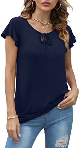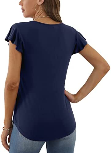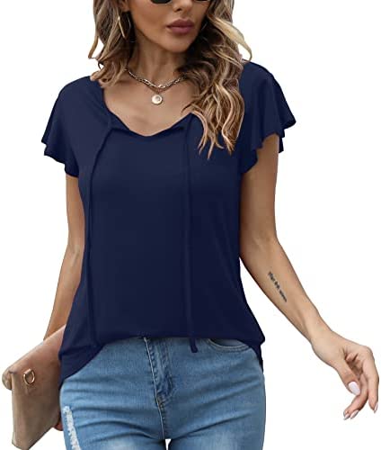 YSYOKOW Womens Summer Casual Tops V Neck Ruffle Short Sleeve T-Shirts
