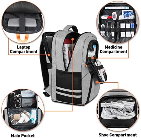 MULTIFUNCTIONAL COMPARTMENT: This travel backpack for men has four compartments. The dedicated padded computer section stores up to a 15.6 inch laptop plus, there are three additional large compartments perfect for files, shoes, wet clothes, lunch boxes, nursing school essentials or whatever you need. The travel bag backpack of four compartments keeps your things well organized