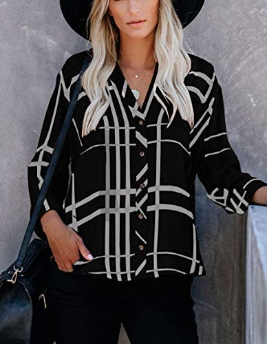 💗Features: Button Down Shirts and Blouses, V neck, Stripes, Color Block, Cuffed Sleeve,Short Sleeve Shirts